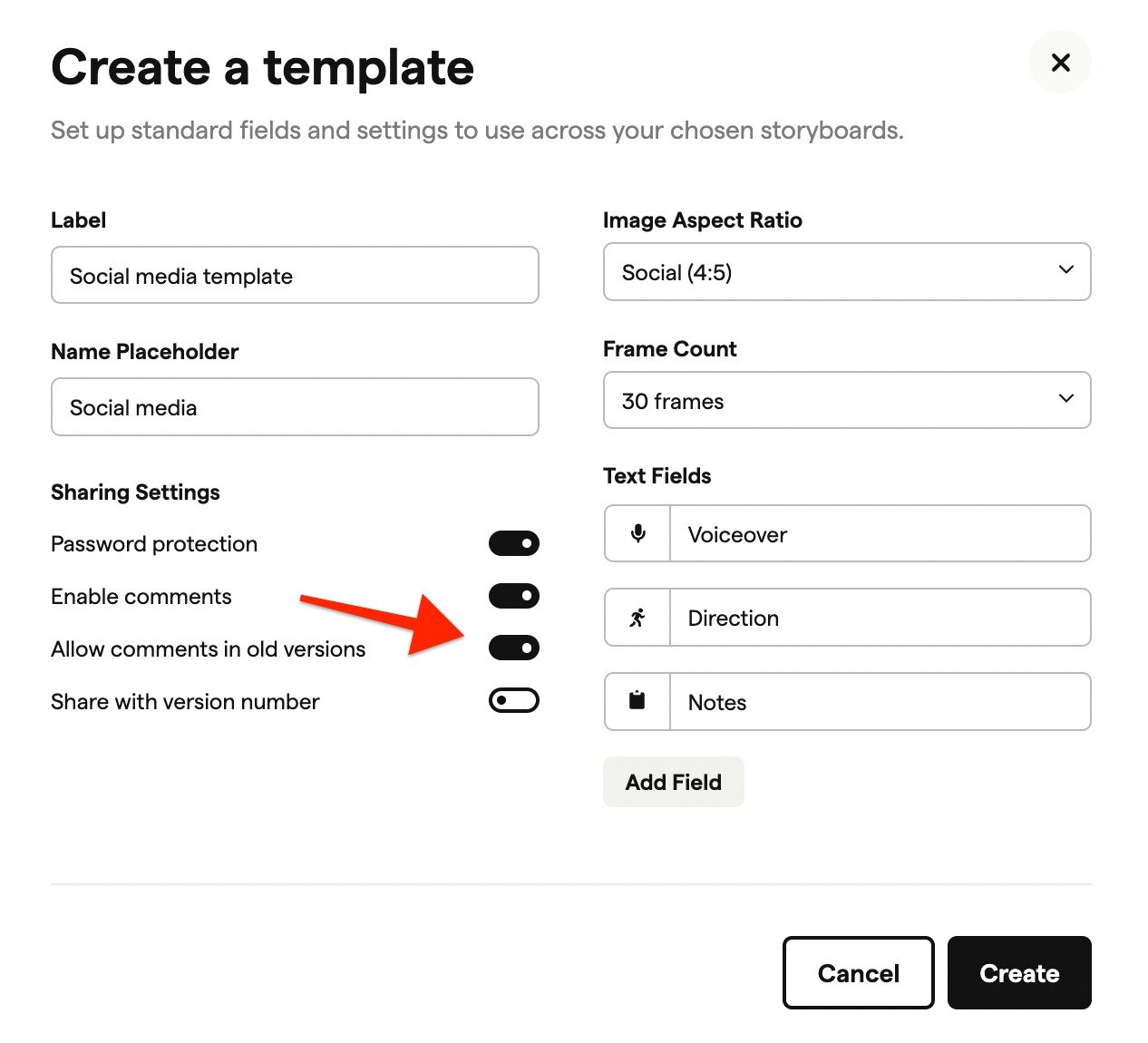 Whether you're working with multiple clients who each have specific format requirements, or you want to standardise how your team sets up storyboards, templates let you define the settings once and apply them instantly.