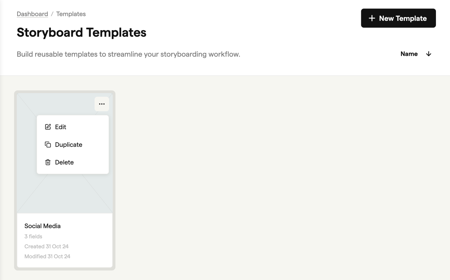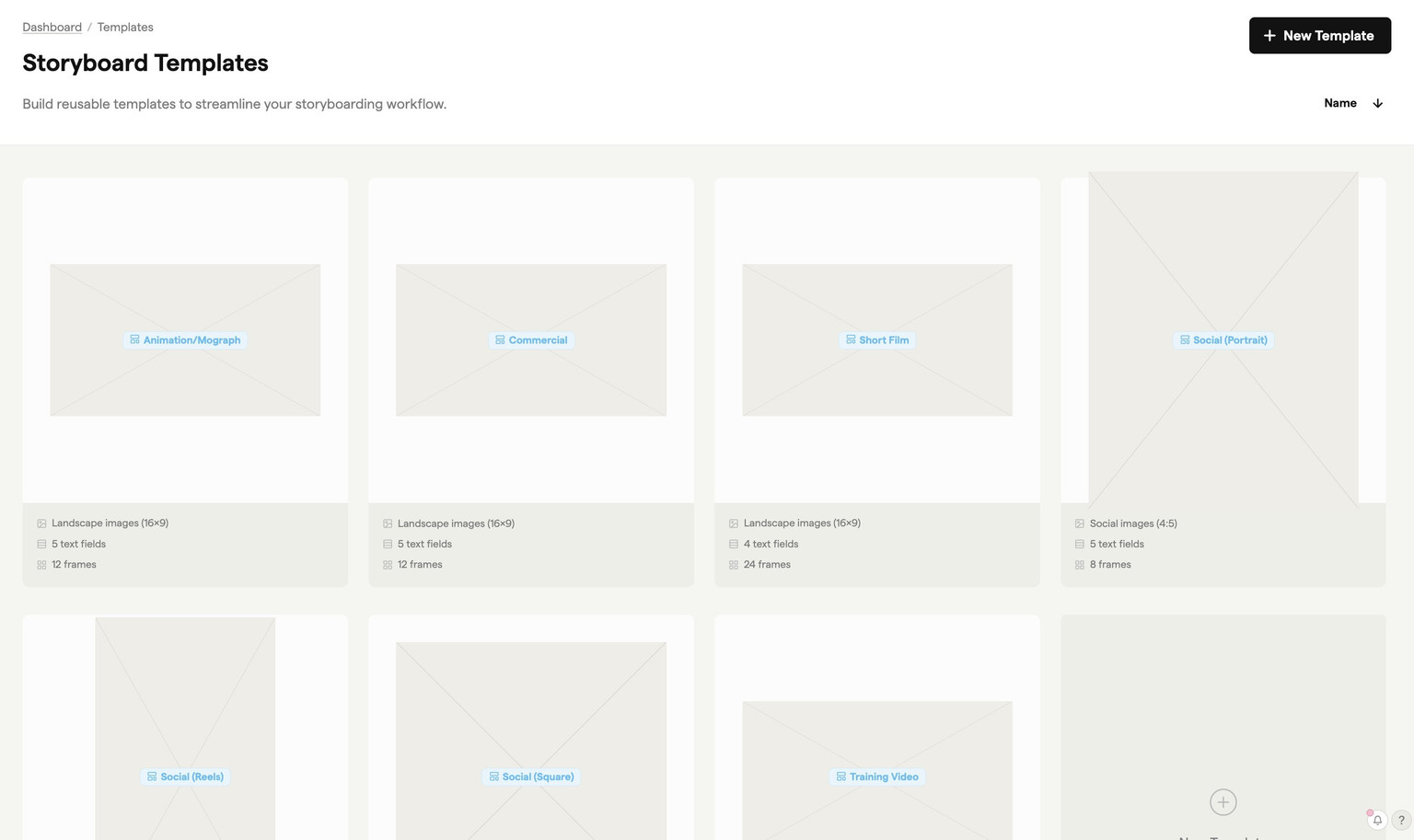 Templates help your studio maintain consistency across client projects and reduce setup time when creating new storyboards.